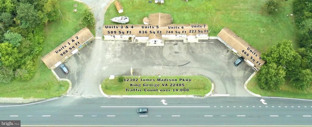 Unit 9. Great Office or retail unit. 466 Sq Ft. Located on 4 Lane US Highway Route 301 (James Madison Pkwy) with a traffic count of over 14,000.