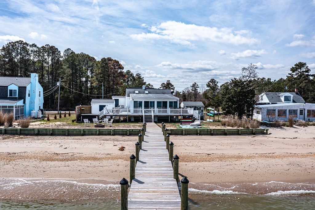 Coastal cottage living meets investment versatility along Judith Sound with views extending to the Potomac River. This thoughtfully updated beach cottage offers a proven short-term rental history and conveys furnished for a seamless transition. The main home features two bedrooms and inviting living spaces enhanced by new flooring, kitchen backsplash, updated light fixtures, and fresh paint. A newly drilled artesian well adds long-term value and peace of mind. Just across the road, the detached two-car garage includes a finished upper level with two additional bedrooms and a living area, providing flexible space for guests or extended stays. Enjoy a sand beach, outdoor shower, and a new top-of-the-line hot tub with privacy fence â designed for comfort and privacy. Electric vehicle charging station installed at the garage. No showings permitted during short-term rental occupancy. Home is believed to have a two-bedroom septic system. Square footage is approximate.