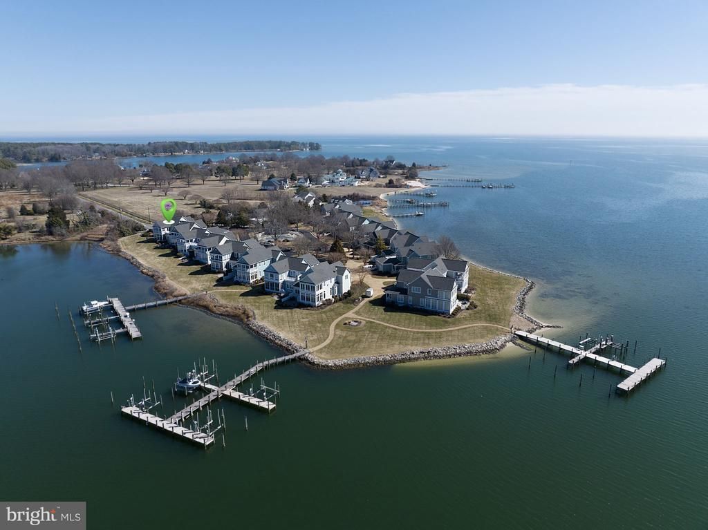 Set sail worry-free! Welcome to an exceptional end-unit townhome offering breathtaking sunsets. Nestled in a remarkable maintenance-free community at the confluence of Bells Creek and Indian Creek, this residence perfectly blends elegance and comfort with unparalleled water views & deep protected anchorage. This is the largest unit in the community, featuring five bedrooms, including three en suites & a 2 car garage. Step into elegant interiors starting in a foyer with cathedral ceiling and abundant natural light. The great room offers water views from two sides of the townhome, featuring crown molding, a wall of built-in bookcases with picture lighting, and a gas log fireplace. The dining area has a tray ceiling and is situated among a wall of windows. A waterside covered porch features low-maintenance composite decking, ceiling fans, and a lower paver stone patio with a direct propane line for your grill. The kitchen opens to the great room with a large pass-through window with water views. Equipped with a wall oven, surface cook-top, Corian countertops, and island, it’s a chef’s delight offering flow and plenty of work space. Luxurious bedrooms start with a first-floor primary suite that includes beautiful water views, patio access, a walk-in closet with built-in shelves, and a remodeled bathroom featuring heated tile flooring, dual sinks, a vanity nook, a zero-entry tiled shower with rain-head and hand-held showerheads, a water closet with wainscoting, and a linen closet. The second-floor guest suites offer two waterside bedrooms with 180-degree water views and access to the waterside balcony, plus two additional guest bedrooms with a full bathroom. Tall double hung w/ transom windows enhance visual interest and invite natural light throughout the first floor of the home. This home is priced below assessment, offering exceptional value for waterfront living. A large two-car garage with a utility sink and built-in storage offers convenience for organization. The community amenities include a clubhouse complete with a library and kitchen, a pool, and 3 pier complexes with water, electricity, and 10 ft+ Mean Low Water (MLW). Immerse yourself in the tranquility and luxury of this townhome, where every detail has been designed for a worry-free lifestyle.