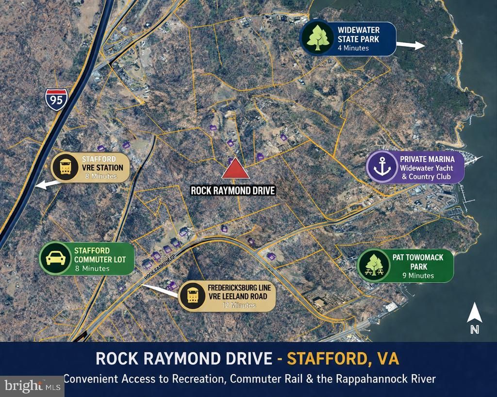 Discover the opportunity to build your custom home on this private, wooded homesite in a convenient Stafford County location off Rock Raymond Drive. This parcel offers a rare combination of natural surroundings, commuter accessibility, and access to nearby recreation, with potential for subdivision. Enjoy being just minutes from Widewater State Park, where hiking, kayaking, scenic views along the Potomac River, and access to a public boat landing create a true outdoor lifestyle. Pattowomack Park is also nearby and features athletic fields, playgrounds, and picnic areas, offering great options for recreation and community activities. This location is ideally situated for everyday convenience, with easy access to shopping, dining, and services in both Stafford and nearby Prince William County. For commuters, the property is well-positioned with access to Stafford VRE Station and Leeland Road VRE Station on the Fredericksburg Line, as well as nearby commuter lots for easy travel northbound. Convenient access to I-95 enhances connectivity to Quantico, Northern Virginia, and Washington, DC. Bring your own builder or use ours to create a home that fits your vision. Whether you are looking to build now or secure land for the future, this property offers a compelling blend of privacy, flexibility, and location.